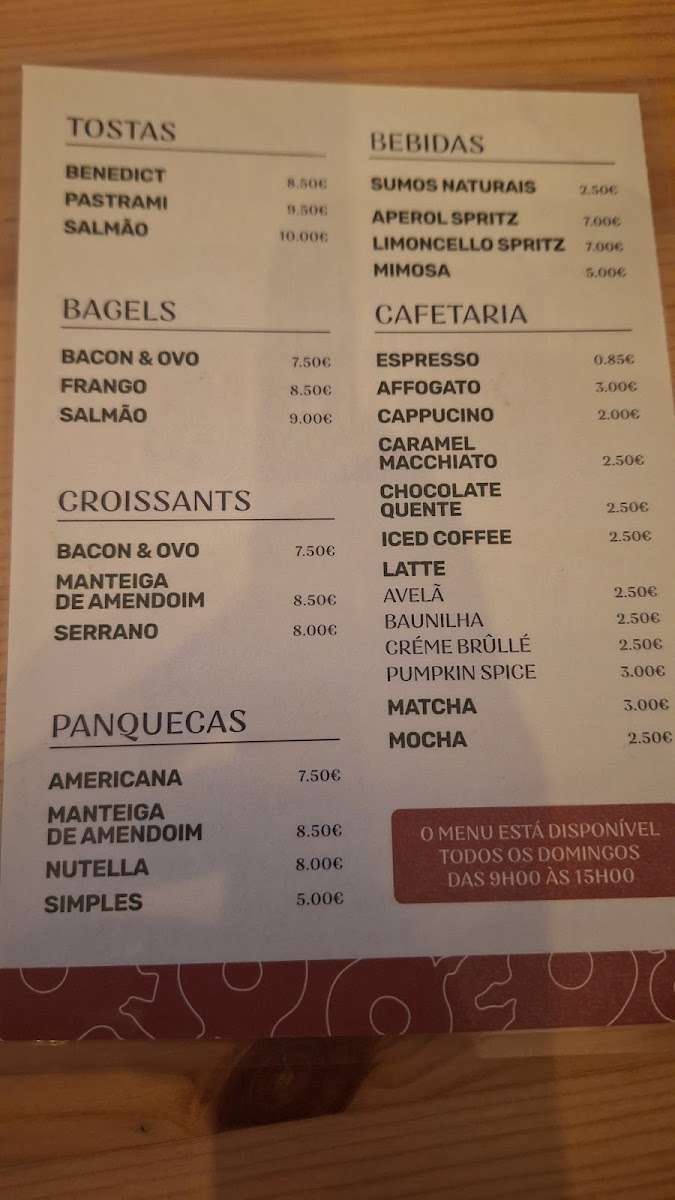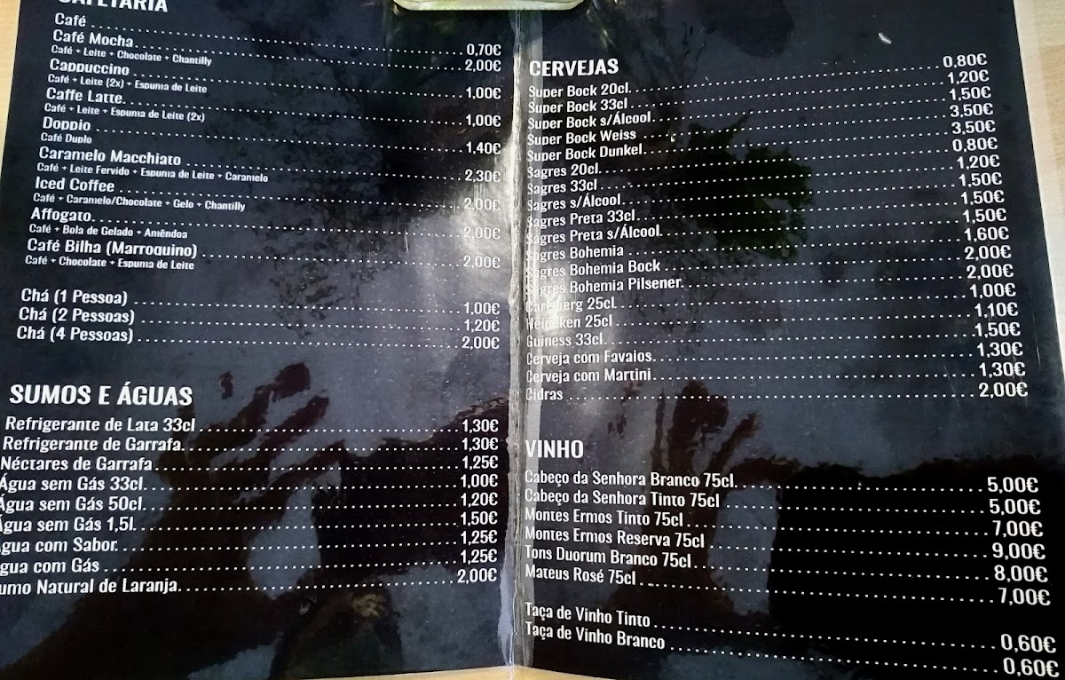 - Light Meals: Includes sandwiches like the Prego Em Bolo do Caco and Bolo do Caco Hambúrguer, as well as a selection of snacks such as Dose de Batatas Bravas.
